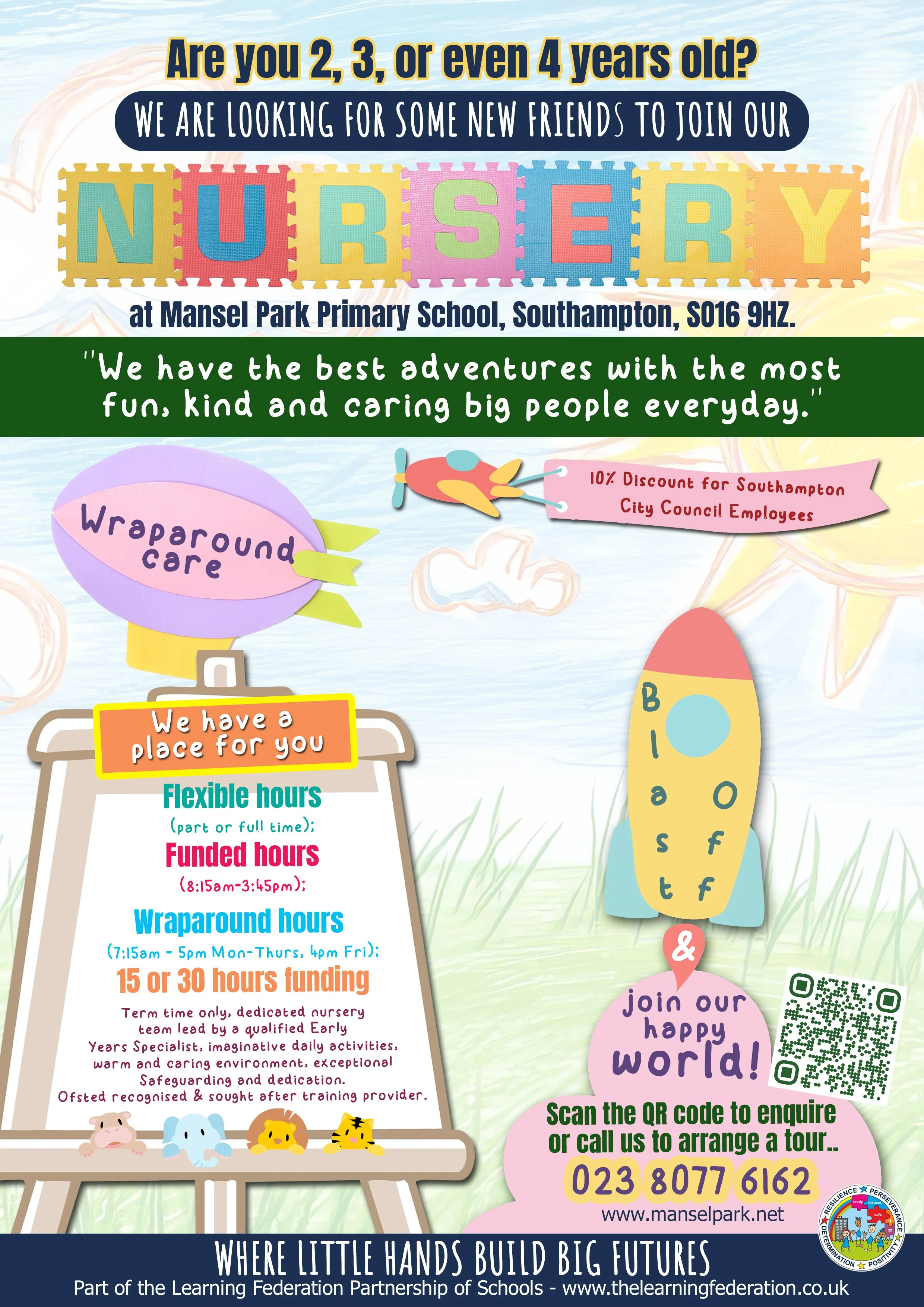 Please be advised that attendance at Mansel Park Nursery does not guarantee enrolment into Year R at our Primary School.