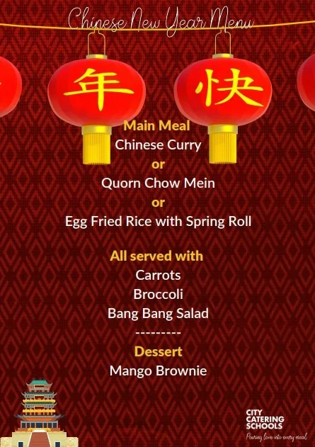 City Catering Schools - Menu change 26 Jan Written By Author Chinese New Year menu 2023 - Menu change - 27th JanuaryPlease find below our celebration menu Author